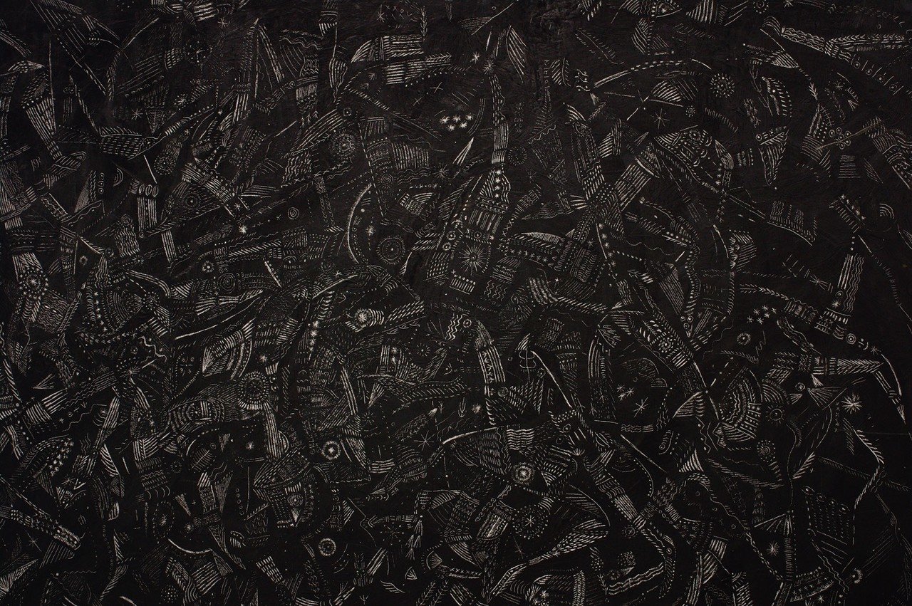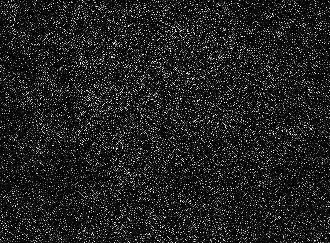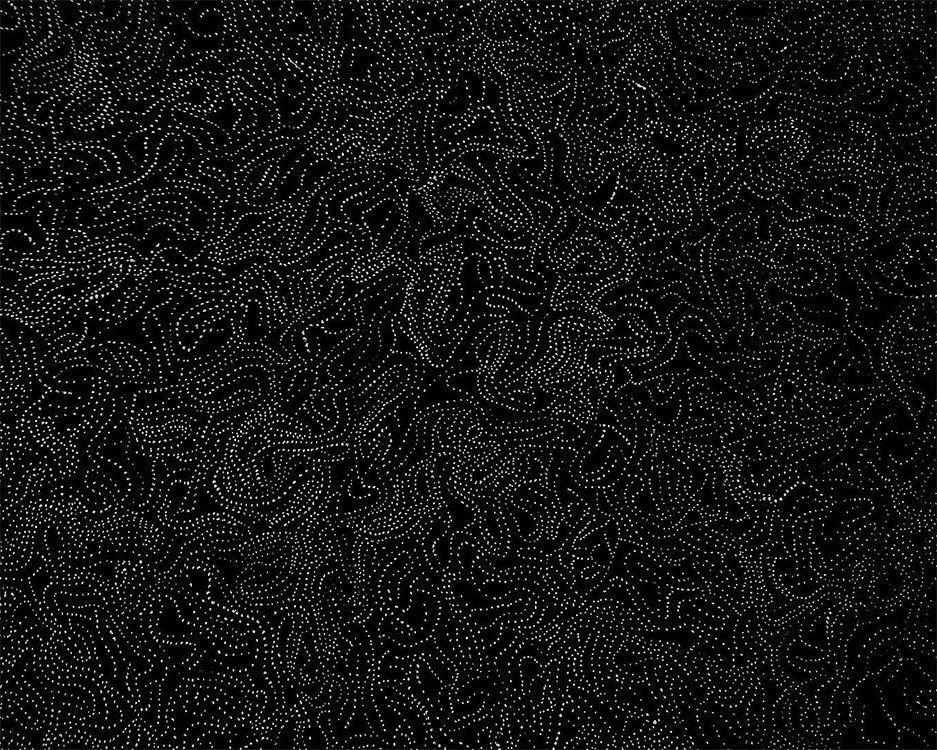 ひとつの点を定着させるだけでも一分近くかかったため、全体を埋め尽くすまでには膨大な時間を必要とした。けれどそのように果てしない時間をかけて充した夥しい点によって、画面には無数のイメージを胚胎するかのような空間が現れた。