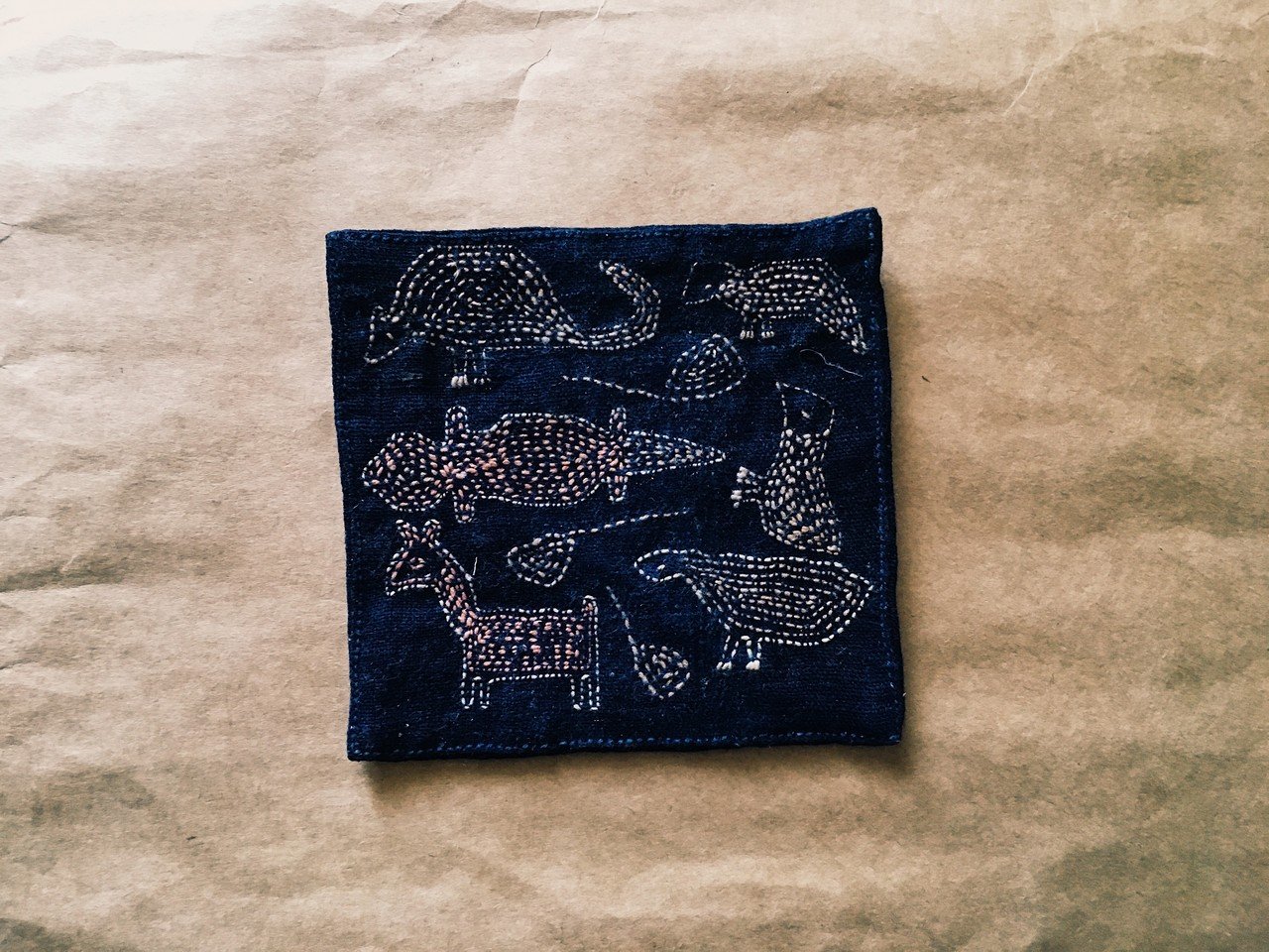 コースターほどの大きさのそれには、動物や虫をはじめとする生きものから象形的な記号のようなものまで、種々のモチーフが自由奔放に縫われていた。その造形感覚のすばらしさに胸打たれ、一時期はインターネットでレンテン族の豆敷の写真を大量に集めてスクラップしていた。