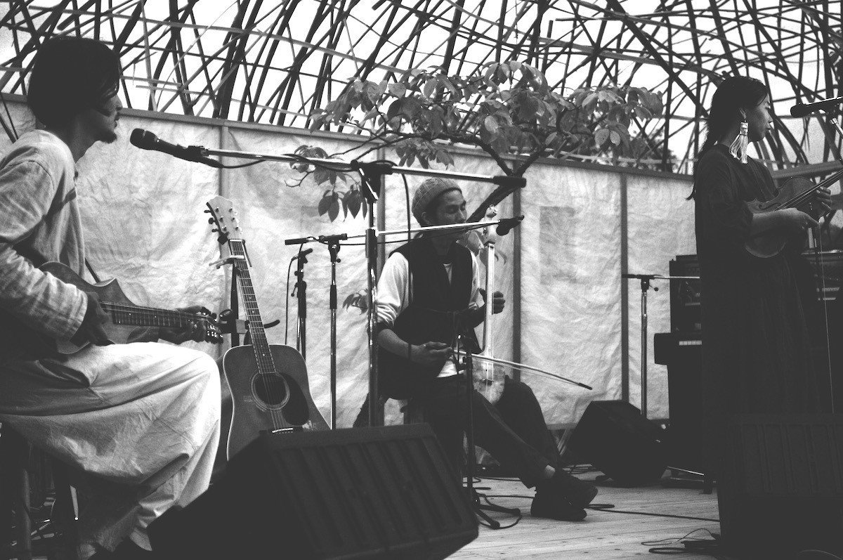 祝祭最終日のフィナーレには、カテリーナの家族の兄妹である未來さん・舞香さんによる音楽デュオ「baobab」と、音楽家のharuka nakamuraさん、パーカッションの田中良太さんによる演奏が、写真家の川内倫子さんによって時折スクリーンに映し出される映像と交錯しながら、カテリーナの森全体へと鳴り響いていった。