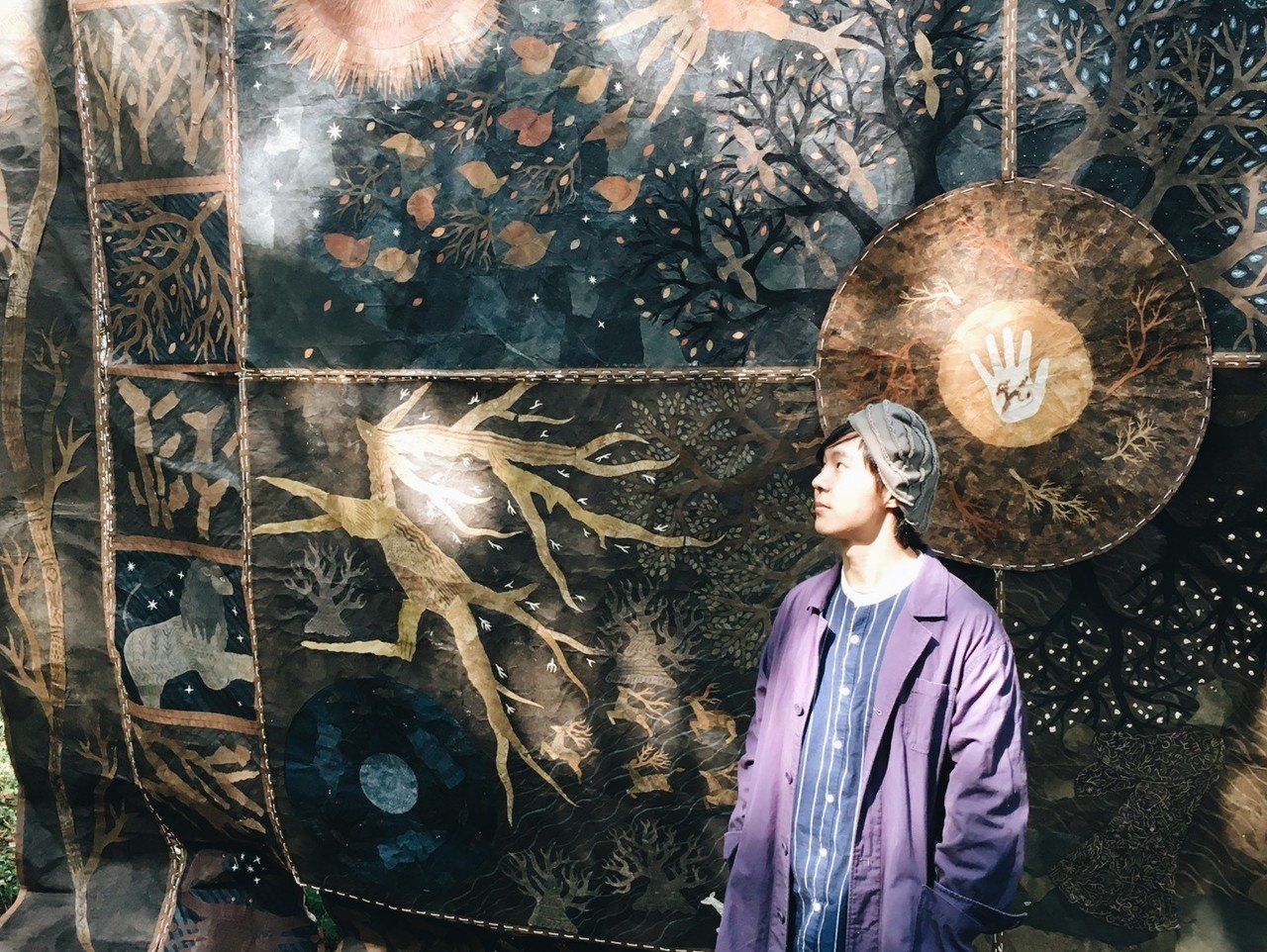 有難いことに、その年の終わりにはyolchaで個展をさせていただくことになったものの、それ以降は関西とのご縁も少なく、すっかりご無沙汰してしまっていた。そして個展からほぼ一年後、巨きな絵の制作中にイルボンさんからふたたびお声がけをいただくことになり、そのとき今後世界を旅することについてお伝えすると、「ならその道標になるような展示をしてから出発しないかい?」と、巨きな絵の巡回展をご提案いただくことになったのだった。